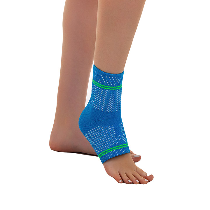 Anatomicky tvarovaná elastická bandáž hlezna navržena pro sportovní aktivity.