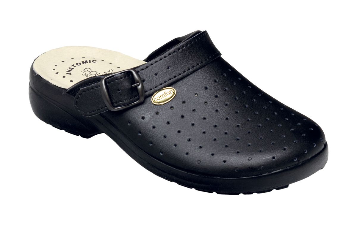 Velmi kvalitní obuv Santé s plnou špičkou a flexibilním páskem. Přizpůsobte si obuv podle svých potřeb - díky nastavitelnému pásku s přezkou. Můžete ji nosit jako pantofel nebo sandál, což zvyšuje variabilitu nošení. Oblíbený vzor - léty ověřená kvalita.